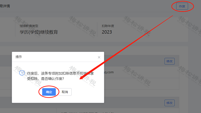 操作步骤同情形二,【首页】→【我要查询】→【专项附加扣除信息查询】→【扣除年度2023】→【查看】→【作废】