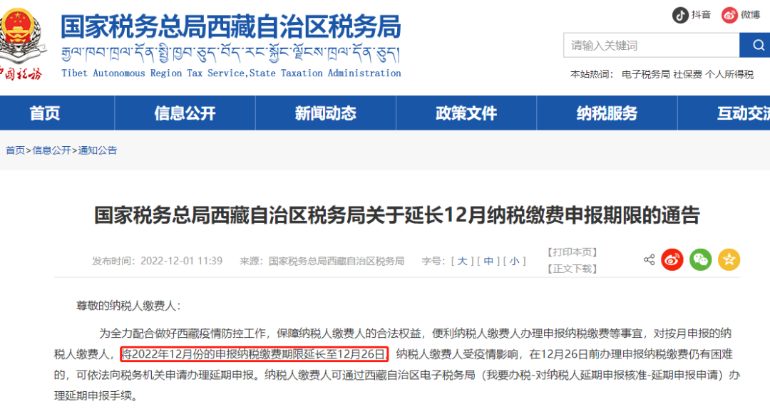 汤汤提醒:12月征期申报常规至15号,不过受疫情影响,部分地区征期延长,目前北京、西藏、甘肃等地已经发布延期提醒,还请互相传达!